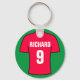 Regalo para un hincha de fútbol. Anillo de llaves con una camisa de fútbol en rojo. Personaliza con tu elección de nombre y número.
