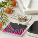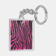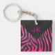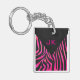 Llavero Diseño de cebra en negro y rosa caliente monograma
