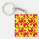 Diseño de estilo retro en amarillo y rojo con formas redondeadas y cuadrados