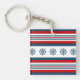 Diseño de temática náutica con rayas rojas y blancas y decoración de brújula