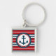 Diseño náutico con decoración de ancla en forma redonda sobre fondo rayado rojo, azul y blanco