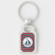 Diseño náutico con decoración de velero en forma redonda con estrellas en fondo rayado rojo, azul y blanco