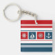 Diseño náutico con decoración de velero, ancla, brújula y rueda de vela sobre fondo a rayas