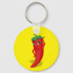 Un personaje de dibujos animados de pimiento rojo y picante. Diseño original con fondo amarillo.