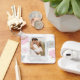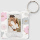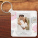 Donde comenzó todo, las parejas románticas presentan una cadena Keychain personalizada moderna de color rosa abstracto con acentos purpurinas de oro. En el centro, agrega tu foto favorita y tu texto de cómo te conociste. Easy DIY (hágalo usted mismo) editando el texto en los cuadros de texto proporcionados. Diseñado por ©Evco Studio www.zazzle.com/store/evcostudio