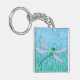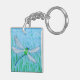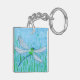 ¡Una acuarela de una libélula verde y azul adorna esta cadena de llaves!