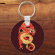Los dragones chinos rojos son criaturas míticas símbolo de buena fortuna. También son uno de los signos de zodiaco chino. Ilustracion de diseño gráfico en la cadena de claves para los fans de los dragones y los amantes de la mitología china.