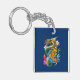 Un dragón chino verde con un pez koi naranja con flores de loto y flores de cerezo en el fondo azul
