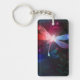 Flor, vuelo, libélula roja, con alas transparentes y detalladas sobre fondo oscuro, nocturno y luminoso con plantas tropicales y luciérnagas. Lluvia roja.