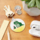 Un lindo par de dragones verdes con acentos rosas sobre un fondo amarillo y blanco.