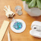 Un arte original del diseño de FoxVox - un dragón hecho de nudos celtas y rodeado por un borde de espirales/remolinos celtas, en colores azul, verde y violeta.