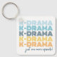 Keychain, un amante del drama coreano moderno, repite las palabras "K-Drama" en tonos vivos y divertidos de azul y naranja con la frase "sólo un episodio más". La parte posterior se personaliza con un nombre en un patrón de repetición.