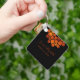 El oscuro y dramático llavero boda presenta una flor moderna metálica de asador de cobre con texto de personalizable sobre fondo negro.