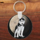 Llavero Dramático Husky blanco y negro contra la luna llen