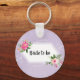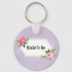 Llavero de futura novia para una ducha de novia con un diseño floral acuarela y texto personalizable y fondo púrpura. Las imágenes de flores utilizadas son cortesía de freepik.
