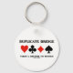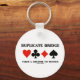 No hay necesidad de ser un Lifemaster para disfrutar de esta cadena de chismes de chistes de puente duplicada con los cuatro trajes de cartas (corazón, club, diamante, pala) y el truismo de puente duplicado "Duplicate Bridge se lleva la vida al maestro". ¡Haz que todo el mundo haga una doble posición sobre lo que significa exactamente este dicho la próxima vez que juegues bridge con este keychain!