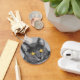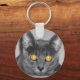 Una fotografía que se ve directamente en la cara de un gato gris con ojos dorados y brillantes. Se edita con colorantes selectivos para enfatizar los ojos hipnotizantes.