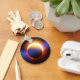 Un eclipse solar (la luna que cubre el sol), con el típico efecto "lente-bengala" en azul.