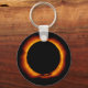 La vista de la NASA de un eclipse solar casi total muestra un anillo brillante de la luz naranja del sol y su corona alrededor de la imagen oscura de la luna mientras el eclipse parcial se maximiza.