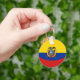 La bandera de Ecuador ha sido ajustada hábilmente al fob circular de esta cadena de claves. Un práctico recordatorio de la herencia ecuatoriana.