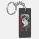 Carry a piece of modern, edgy art wherever you go. This striking keychain features a raw, street-art inspired take on Michelangelo's David bust. With its cracked marble texture, bold red paint splatters, and the impactful word "MIND", it's the perfect dark academia or grunge accessory for your keys, backpack, or lanyard. A great small gift for art lovers with a rebellious side.