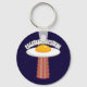 Ilustracion de personalizado vectorial de un delicioso OVNI de huevo frito al sol con un delicioso rayo tractor de rodaja de tocino con texto EGGSTRATERRESTRIAL. Palabras clave: huevo, tocino, desayuno, OVNI, alienígena, soleado, lateral, personalizado, espacio, extraterrestre, comida, lindo, yolk, sci, ciencia, ficción, marciano, humor, carne, cerdo, secuestro