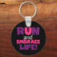 Si te gusta correr, correr 5 Ks, 10 Ks, media maratón o maratones, te encantará este colorido diseño de texto en morado y rosa que dice Correr y abrazar la vida!