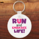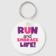 Si te gusta correr, correr 5 Ks, 10 Ks, media maratón o maratones, te encantará este colorido diseño de texto en morado y rosa que dice Correr y abrazar la vida! ¡Corre y abraza camisetas vitales, tazas, bolsas, tarjetas, pegatinas, cadenas de llaves, mousepads, estuches para iPhone, imanes y mucho más!