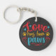 Corta y colorida cadena de claves de diseño de perro con texto de rojo, amarillo y azul con huellas de pata dice ¡Amor tiene cuatro patas! ¡El amante del perro amará estas lindas camisetas de perro de Love Has Four Paws!