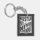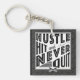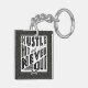 El Concurso De Béisbol Nunca Dejó De Llenar Keychain. El texto dice: Arrojar, golpear y nunca salir, con el ícono cruzado de los bates de béisbol y softball.
