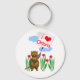 Keychain con mi obra de arte de un personaje castor sosteniendo un cartel que dice "Amo Ontario" con un corazón rojo.