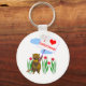 Keychain con mi obra de arte de un personaje castor sosteniendo un cartel que dice "Yo corazón Saskatchewan".