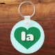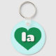 Este llavero cuenta con un corazón verde vibrante que contiene las letras fundas de la negrita, redondeadas y blancas, una versión lúdica de la abreviatura de Louisiana, el estado pelícano o Los Ángeles, la ciudad de los ángeles.