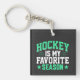 La cadena de hockey con texto verde y blanco sobre fondo negro dice ¡El hockey es mi temporada favorita!
