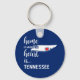 El hogar de Tennessee es donde está el corazón - en escritura mixta y fuente blanca en mayúsculas con la silueta del estado y un corazón rojo