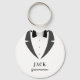 Pídele a sus padrinos y al mejor hombre que se distancien de su fiesta nupcial con este sencillo y clásico llavero de diseño de traje de corbata. El nombre y el rol se pueden personalizar.