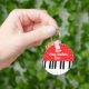 El piano de cola Navidad Cojín decorativo para un maestro de piano, pianista, pianista, etc. Claves de piano negro y blanco y copos de nieve a rayas rojas, con elegante tipografía de escritura "Mejor profesor de piano de la historia" y el nombre. Elegante y personalizada idea de regalo de vacaciones de invierno para él o ella.