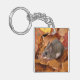 Aquí hay una linda cadena acrílica animal con un pequeño ratón de ciervo en hojas de otoño.