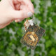 Cadena de claves con el tapiz medieval La Unicornio en cautiverio (1495-1505). El sétimo tapiz de Los Tapestries Unicornio —también conocido como El unicornio descansa en un jardín— muestra un unicornio blanco con un collar azul dentro de una cerca. El unicornio está rodeado de hierba verde y hermosas flores. ¡Un regalo fantástico para los coleccionistas de arte medieval y para los amantes de la fantasía!