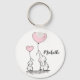 Dos lindos elefantes personalizados sostienen globos con forma de corazón rosado en sus baúles. Fondo blanco. Tempate por Tu nombre, letras negras.