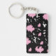 This keychain features an abstract design of irregular shapes resembling soft pink and black spots on a white background, blending creativity with minimal elegance.