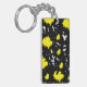 This keychain features an abstract design of irregular shapes resembling yellow and black spots on a white background, blending creativity with minimal elegance.