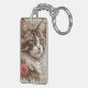 Show off your love for cats with this stunning, artfully detailed key chain featuring a majestic long-haired feline with striking green eyes. Set against a soft, neutral background with a subtle floral accent, this design blends realism with a touch of elegance. The warm tones and intricate fur detailing create a cozy yet sophisticated look, making it the perfect accessory for cat lovers who appreciate both beauty and personality in their everyday essentials.