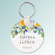 Llavero Elegante boda azul blanco amarillo floral
