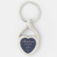 Elegante Boda azul oscuro Gracias cadena de claves. Este elegante llavero, de forma cardíaca, es un gran favor de bodas para los huéspedes. Fondo azul oscuro con texto en un guión moderno. Puede personalizar fácilmente todo el texto - personalizarlo con el nombre de la novia, el nombre del novio, la fecha del boda y otro texto.