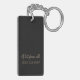 Elegante llavero negro con un monograma botánico dorado en el centro.