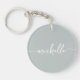 Llavero personalizado elegante y sofisticado con nombre en verde salvia en letra script. Estos diseños minimalistas y simples presentan su primer nombre en una hermosa tipografía con estilo de letra a mano con florituras (o caligrafía) en un fondo de color verde salvia o verde polvoriento. Fácil de personalizar. Un regalo femenino y elegante para inaugurar casa, también para cumpleaños, boda, día de la madre, despedida de soltera, baby shower, fiesta de cumpleaños de sweet 16, para fiesta de graduación y es para la chica que ama cosas únicas y con estilo.