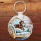 Esta moda y el divertido anillo de claves cuentan con un auténtico dachshund relajante en un lujoso sillón. El sofisticado canino está claramente disfrutando de las cosas más finas de la vida, que bien pueden tocar la fibra de algunos propietarios del adorable doxie, o perro salchicha. Personalice el anillo de claves en el reverso con su primer plano como un monograma elegante. Un regalo ideal para los amantes del perro.