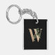 Elegante llavero negro con un monograma botánico dorado con letra mayúscula W en el centro.