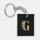 Elegante llavero negro con un monograma botánico dorado con letra mayúscula G en el centro.